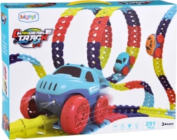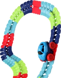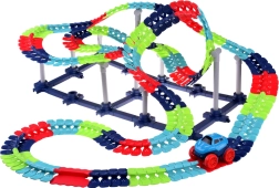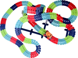 Ez a színes autópálya fejleszti a fantáziát, a finommotorikát és a türelmet. A hajlékony kötéseknek köszönhetően a pályát szabadon formálhatja, hajlíthatja és változtathatja – a rövid sprintektől a grandiózus, szórakozással teli parkokig. A LED fényekkel ellátott kisautó bekapcsolás után magától elindul, és a szűkebb kanyarokat is veszi.