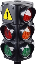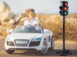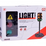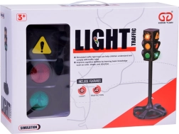 Világító közlekedési jelzőlámpa 3 fényjelzéssel piros, narancssárga és zöld színben, villogó effektussal. Elengedhetetlen eszköz a közúti közlekedési szabályok, az úton való helyes mozgás és a gyalogátkelőhelyen történő átkelés tanításához.