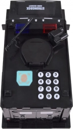 - Érmék egy rejtett nyíláson keresztül helyezhetők be a tetőn elhelyezett lyukon át