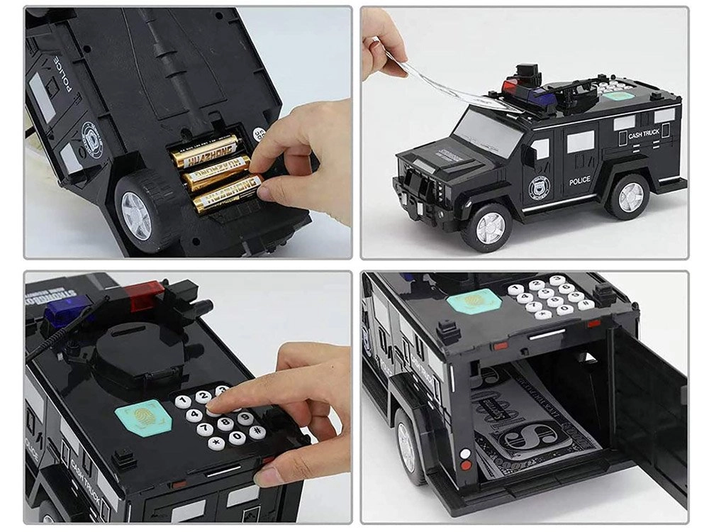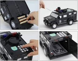 A rendőrautó állat persely egy speciális célokra tervezett autó. Az autócska fényhatásokkal van felszerelve, amelyek célja, hogy megvédje és megőrizze a gyermekek megtakarításait. Ez az autó teljesíti az elvárásokat. A rendőrautó rendelkezik egy belépési kóddal, automatikusan kinyitja az ajtókat, amikor ujjlenyomatot szkennel, és látványos fényhatásokkal is rendelkezik. A rendőrautó látszólag egy játék, de valójában egy pénzszéf.