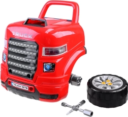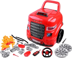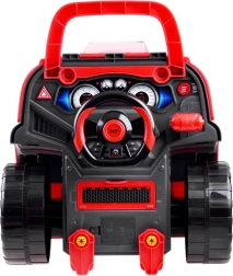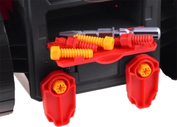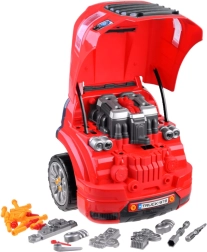 Szétszerelhető motoros jármű. Az autószerelő műhely kis szerelőknek, 61 darab tartozékkal, rengeteg munkát és szórakozást kínál minden kis autószerelőnek. A teljes egészében működő játék műanyagból készült piros és fekete színben, és nagyszerű szórakozást biztosít.