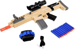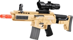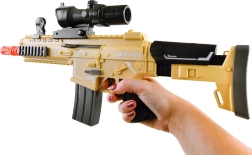 Ez a könnyű, műanyag karabély taktikai „desert” kivitelben ösztönzi a képzeletet és támogatja az aktív mozgást. A habszivacs lövedékeknek köszönhetően a játék biztonságos, és ideális azoknak a gyerekeknek, akik szeretik az akciót, a célbalövést és a csapat alapú szerepjátékot.