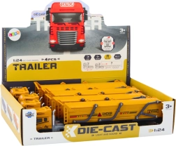 A sárga pótkocsis teherautó egy valósághű játék, amely kis teherautó-rajongóknak készült. A modell 1:24 méretarányban készült, és a részletes kivitelezésének köszönhetően egy valódi építési teherautóra emlékeztet. A teherautó visszahúzható meghajtással van ellátva, így előre vagy hátra toláskor önállóan mozog. A kabin megnyomásával fény- és hangeffektusok aktiválódnak, amelyek fokozzák az autentikusságot és a játékmenet szórakozását.