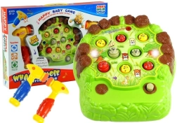 A játékkészlet tartalmaz egy zöld-barna műanyag táblát színes állatfejekkel és két kalapácsot, lehetővé téve két játékos együttes játékát. Az állatos és növényes színes grafika minden gyereket magával ragad, akik sosem unatkoznak ezzel a játékkal. A gyerekek nemcsak szórakoztatóan játszanak, hanem új készségeket is elsajátítanak, mint a színek és hangok felismerése.