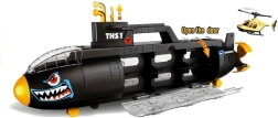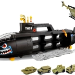 A nagy tengeralattjáró, amely fenyegető cápára hasonlít, rengeteg érdekes elemet rejt magában. Mit találsz benne? Különféle típusú autókat és egy helikoptert! A kétoldalas válogatóval ellátott tengeralattjáró szenzációs ajándék lesz annak a gyermeknek, aki imádja a járműveket és a víz alatti gépeket.