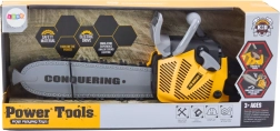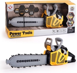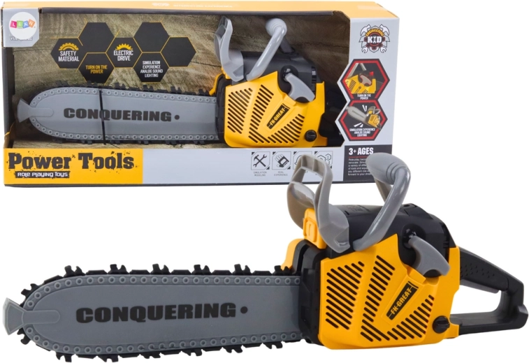 Ez a gyerek motoros láncfűrész úgy lett tervezve, hogy hűen utánozza a valódi szerszámot, ugyanakkor teljesen biztonságos legyen a gyerekek számára. Bekapcsolás után, a markolaton található gomb megnyomására a gumilánc forogni kezd, amit valósághű hangok és villogó fények kísérnek. Az ergonomikus markolatnak köszönhetően jól kézben tartható és könnyen kezelhető.