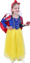 A Hófehérke gyerek jelmez minden kislányt mesebeli hercegnővé varázsol. A csillogó részletekkel díszített kék felsőrész, a sárga szoknya és a piros akcentusok klasszikus kombinációja ikonikus megjelenést biztosít, amely minden eseményen feltűnést kelt.