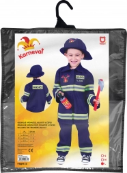 Az L méret 8–10 éves fiúknak (128–140 cm) ajánlott. A jelmez tartalma: látványos HASIČI feliratú felső, nadrág és sapka – elég néhány kedvenc kiegészítő, és indulhat a móka.