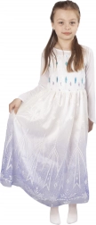 Stílusos lány jelmez, a téli királynő mesés megjelenését hozza el a fehér szín, a lila árnyalatok és a csillogás kombinációjával. A felsőrész flitterekkel díszített, a deréktól tüllszoknya terül szellősen finom mintával, a teljes összhatást pedig a díszített uszály emeli ki.
