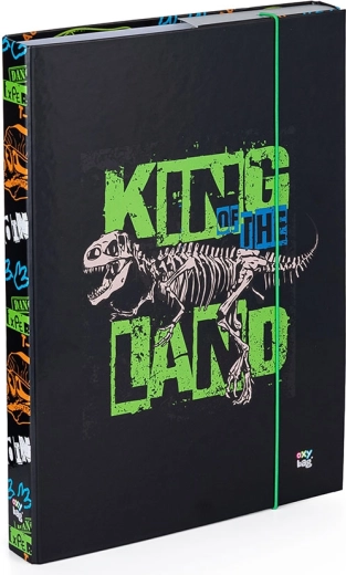 Stílusos füzetbox dinoszaurusz mintával, ideális mindennapi használatra iskolában és otthon. A laminált felület védelmet nyújt a sérülésekkel szemben és könnyen tisztítható, míg az erős gumi mindent biztonságosan egyben tart.