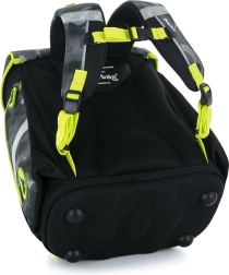 A hátizsák stílusos fekete és szürke álcázást kínál sárga részletekkel, ami nemcsak funkcionális, hanem vizuálisan is vonzó.