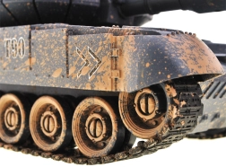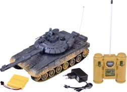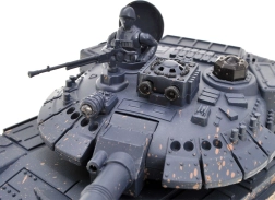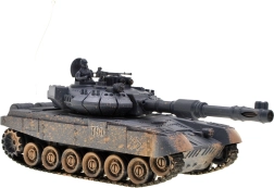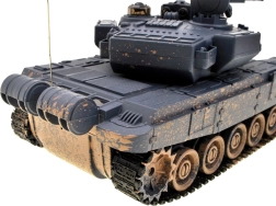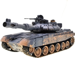 Élvezze a valósághű katonai akciót a T90 távirányítós tankkal, amely lő, halad és világít. A modell elegáns grafitszürke álcafestést kapott, forgatható tornya mindkét irányban 180 fokkal elfordítható, így 360 fokos lövési tartományt biztosít. A tank látványos fényhatásokkal van felszerelve, amelyek sötétben különösen jól mutatnak. Továbbá a torony nyitható fedele alá elhelyezhető a csomagban található géppuskás tankos figura.