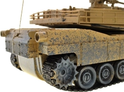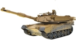 Az M1A2 ABRAMS RC tank kidolgozott modell látványos LED világítással és élethű motor- és lövés-hangokkal. A forgatható toronynak és a gumilánctalpaknak köszönhetően simán mozog előre és hátra, helyben is meg tud fordulni, valamint pontos manővereket végez beltérben.