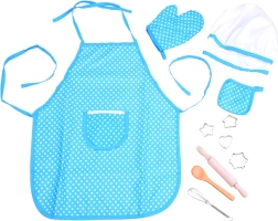 Ez a gyermek szakácskészlet ideális azoknak, akik szívesen segítenek a konyhában. A zsebes kötény, a gumis sapka és a hőálló kesztyű megóvja a ruhát és a kezeket, míg a fa nyújtófa, kanál, habverő és fém kiszúrók szórakoztatóvá teszik a tészta és a kekszek elkészítését. Elegáns csomagolása miatt remek ajándék kis szakácsoknak.