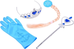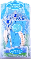 Kék dísztű, amely könnyen rögzíthető a szőke fonott hajjal, így segít a kedvenc mesebeli karakter hasonmásává válni. A korona és a pálca elengedhetetlen kiegészítője minden hercegnőnek, ezért gondosan megtervezték és gyönyörű kék műanyag figurákkal díszítették. A kaviár gyűrű elegáns dekorációként és kiegészítőként szolgál a lányok számára.