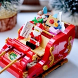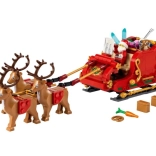 - A készlet tartalmaz egy Mikulás minifigurát, négy rénszarvast dekoratív, levehető nyergekkel, nyolc összeállítható ajándékot, valamint gitárt, egy pár sílécet és mackót.