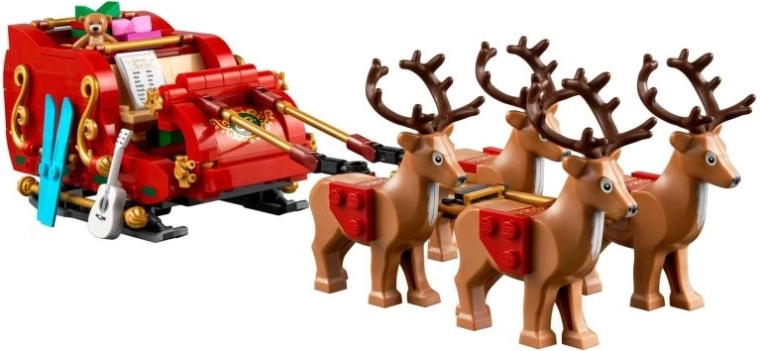 A csomag tartalmaz egy Mikulás minifigurát, négy rénszarvast könnyen állítható hámmal, valamint nyolc megépíthető csomagot. A kiegészítők – gitár, egy pár síléc és mackó – tovább bővítik a játékélményt. A szett támogatja a közös játékot – a gyerekek „kincseket” kereshetnek és szétoszthatják az ajándékokat.