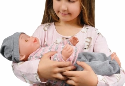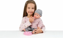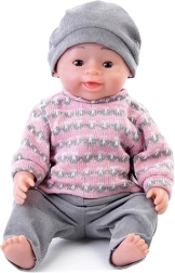 Puha, mozgatható karok és lábak, valamint bájos, rózsaszín-szürke ruhácskák támogatják a gondoskodó szerepjátékot. A 43 cm-es méret ideális a kisgyermek kezekhez.