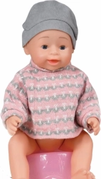 Töltsd meg a mellékelt cumisüveget, adj a babának inni, majd ültesd a bilire – a köldök feletti gomb megnyomására pisilni kezd. Remek eszköz a higiéniai szokások gyakorlásához.