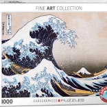 Fedezze fel az egyedi kirakóélményt a EUROGRAPHICS puzzle-lel, amelyet Hokusai ikonikus műve, a Kanagawai nagy hullám inspirált. Az eredeti kivágásnak köszönhetően, amely nem követi a standard rácsszerkezetet, a darabok rendhagyó formájúak, így az összeállítás egyszerre szórakoztatóbb és kihívást jelentőbb. Ideális választás tapasztalt puzzlözőknek, valamint stílusos dekorációnak összeragasztás után.