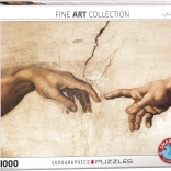 Élvezze a művészi élményt a „Ádám teremtése – képrészlet” 1000 darabos puzzle-lel. Az EUROGRAPHICS szokatlanul formázott darabjainak köszönhetően ez a puzzle magasabb nehézségi szintet, a híres mű részletgazdag kidolgozását kínálja, és összeállítva kb. 67,63 × 48,89 cm méretű.