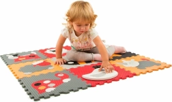 Az állatos motívumokkal ellátott habos kirakó a szürke és piros árnyalat kombinációjában remek választás játszószőnyegként a gyerekszobába vagy a nappaliba. Az egyes képek öt–nyolc kivehető részből állnak, így a gyerekek gyakorolhatják a finommotorikát és a logikus gondolkodást. A felület puha, biztonságos, könnyen karbantartható, és szigetelő tulajdonságainak köszönhetően véd a hideg padlótól.
