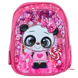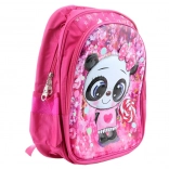 A hátizsákot egy aranyos panda díszíti, ami masnit és nyalókát tart, ezzel fokozva a játékosságot és vonzerőt a kisgyermekek számára.