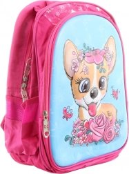 Vidám gyerek hátizsák aranyos kutya motívummal, ideális iskolai kellékekhez. Kényelmes párnázott pántok és elegendő hely a mindennapi használatra.