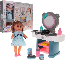 Az interaktív toalettasztal Kinga babával jóval többet kínál, mint egyszerű játékot. A baba „pisil”, a hangeffektek pedig valósághű élményt adnak. A minőségi műanyagból készült toalettasztal megvilágított tükröt és helyet biztosít a kiegészítők tárolására.