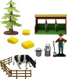 A készlet tartalmaz egy szénás pótkocsit és további farm kiegészítőket, amelyek gazdagítják a gyermeki játékot új lehetőségekkel.