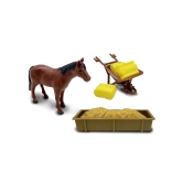 A készlet részei a ló figurák, gazdálkodó és további kiegészítők, mint például karám, menedék és szerszámok, hogy még autentikusabbá tegyék a játékot.