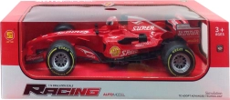Lépjen rá a versenypályára ezzel a csodás piros forma 1 autóval, amely hanghatásokkal van felszerelve. A lendkerekes meghajtásnak köszönhetően az autó simán és valósághűen mozog. A versenyző fejének megnyomásával aktiválódnak a valósághű versenyhangok.