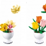 Fedezze fel a Sluban innovatív építőkészletét, amely hat különböző virágfajt kínál, beleértve a rózsát, levendulát, margarétát, lótuszt, pünkösdi rózsát és tulipánt. Minden virág fehér virágcserépben található, ami bájos dekorációt alkot.