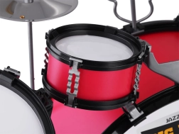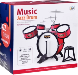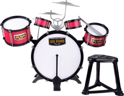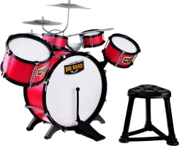 A szett mindent tartalmaz - dobokat, cintányérokat és ülőkét, hogy a gyerekek azonnal elkezdhessenek játszani.