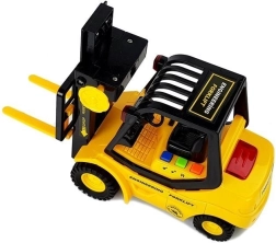 A targonca oldalán három gomb hanghatásokat ad ki, mint a motorindítás, duda és tolatás, gazdagítva a játékélményt.