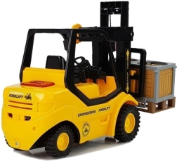 A targonca 1:16 méretarányban büszkélkedhet valósághű részletekkel, mint a kormánykerék és színes gombok. Ideális az építkezési munkák szimulálásához.
