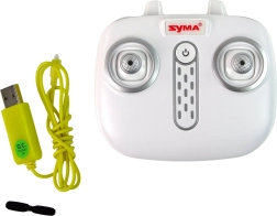 A vezérlés egyszerű a fehér távirányítónak köszönhetően, melynek mérete 13 cm x 12 cm x 5 cm (4 x AA elem nem része a csomagnak). A 2.4G technológiának köszönhetően a helikopter akár 20 méteres távolságból is irányítható.