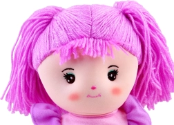A Zuzia textilbaba finom, lila árnyalatú dizájnjával örömet szerez – a hajtól a ruhán át a cipőig. Puha, könnyű, és a kis kezek számára könnyen fogható, így nagyszerű társ elalváshoz vagy utazáshoz.
