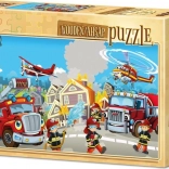Fedezd fel a szórakozást minőségi fa gyerekpuzzléval: bátor tűzoltó motívum, 50 darab, tartós fa rétegelt lemez és kompakt, kirakás után kb. 24 × 16 cm méret – ideális utazáshoz és otthoni játékhoz is.