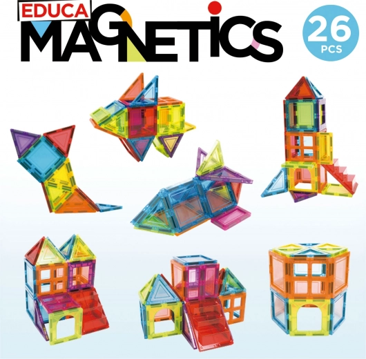 Képzeld el – építs – tanulj! A kreatív, mágneses Magnetics építőkészlet a spanyol EDUCA gyártótól lehetővé teszi nagyszámú háromdimenziós objektum összeállítását kétdimenziós műanyag sokszögekből.