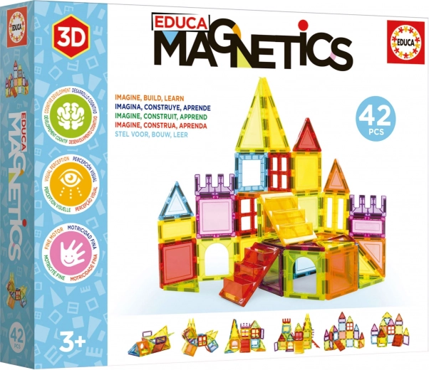 Képzeld el – építs – tanulj! Kreatív mágneses építőkészlet a spanyol EDUCA gyártótól, amely lehetővé teszi számos háromdimenziós objektum összeállítását kétdimenziós műanyag sokszögek segítségével.