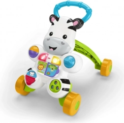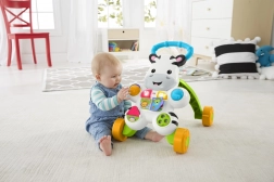 A zebraformájú járássegítőt úgy tervezték, hogy minden gyermeket elbűvöljön. Széles talpa és négy kereke stabilitást nyújt, és támogatja a biztonságot a gyermek első lépései során. A fogantyú könnyű megfogást tesz lehetővé, ami magabiztosságot ad a kicsiknek.