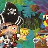Fedezd fel a tengeri kalandokat kalóz témájú, két részből álló puzzle szettel. Mindegyik puzzle 100 darabból áll, és kirakva körülbelül 34 × 24 cm – ideális méret gyerekeknek és kezdő kirakóknak. Remek választás a finommotorika, a türelem és a logikus gondolkodás fejlesztésére.