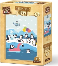 Fa puzzle aranyos pingvin motívummal 25 kiváló minőségben készült darabot tartalmaz afrikai fából, ideális a szórakoztató kirakáshoz.