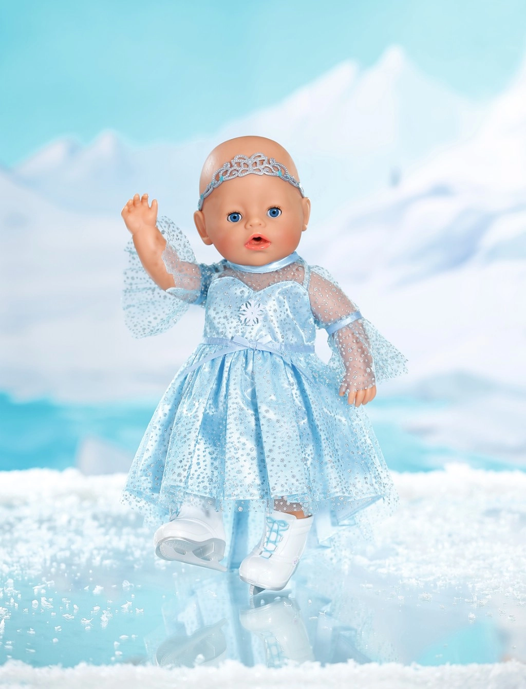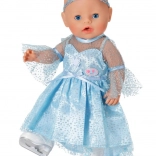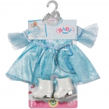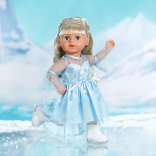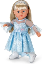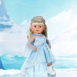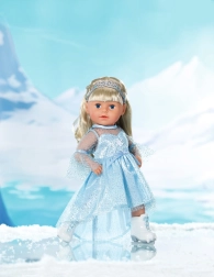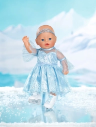 Elegáns szett BABY born 43 cm-es babákhoz, amely a téli királyság varázsát hozza el a mindennapi játékba. A leheletkönnyű, csillogó ruha finom felsőréteggel könnyen feladható, a diadém pedig a frizurát piruettek közben is a helyén tartja. A korcsolya stílusú fehér cipők támogatják a képzeletet és a gyerekek műkorcsolyás történeteit.