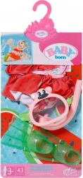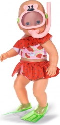 Ez a vidám kiegészítőkészlet minden babafürdetést kis kalanddá varázsol. A színes, dinnyemintás fürdőruha, a könnyű uszonyok és a kényelmes snorkelező maszk tökéletesen illik a 43 cm-es BABY born babákra, és támogatja a képzeletet és a kreatív játékot.