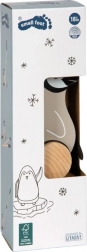 Mozgás közben a pingvin finom csattogó és ringó hangokat ad ki, amelyek természetes módon további lépésekre ösztönzik a gyerekeket. A gumírozott kerekek kímélik a padlót, és csendes, egyenletes mozgást biztosítanak. A minőségi FSC fa biztonságos és felelős választást jelent.