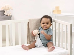 A texturált anyag és a hímzett részletek ösztönzik a tapintási ingerek felismerését és a legkisebbek kíváncsiságát.