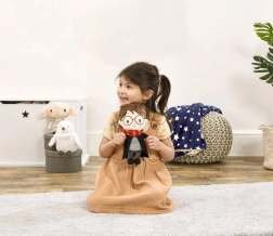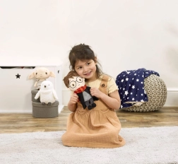 Ez a hivatalosan inspirált plüss az ikonikus fekete köpenyt és a piros-sárga (griffendéles) sálat viseli, amelyek a kerek szemüveggel és a villám sebhellyel együtt hűen idézik a kedvelt varázslót. Kiváló a érzékelés fejlesztésére és a megnyugtató esti rutinokhoz.