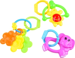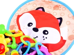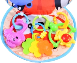 A zizegő mini alátét és a színes csörgők fejlesztik a látást, a hallást és a tapintást, valamint támogatják a kézkoordinációt.